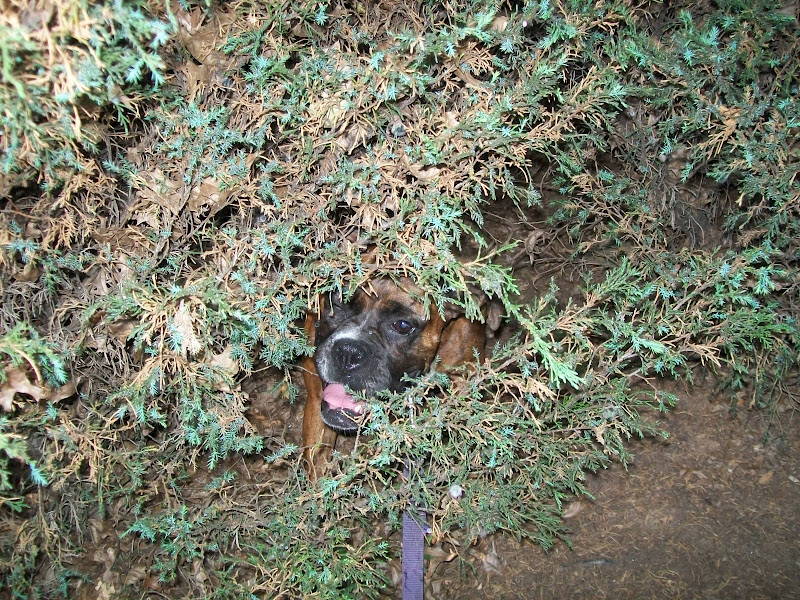| Jas hiding under a bush during a rainstorm in Georgia. At least *one* of us was dry. |